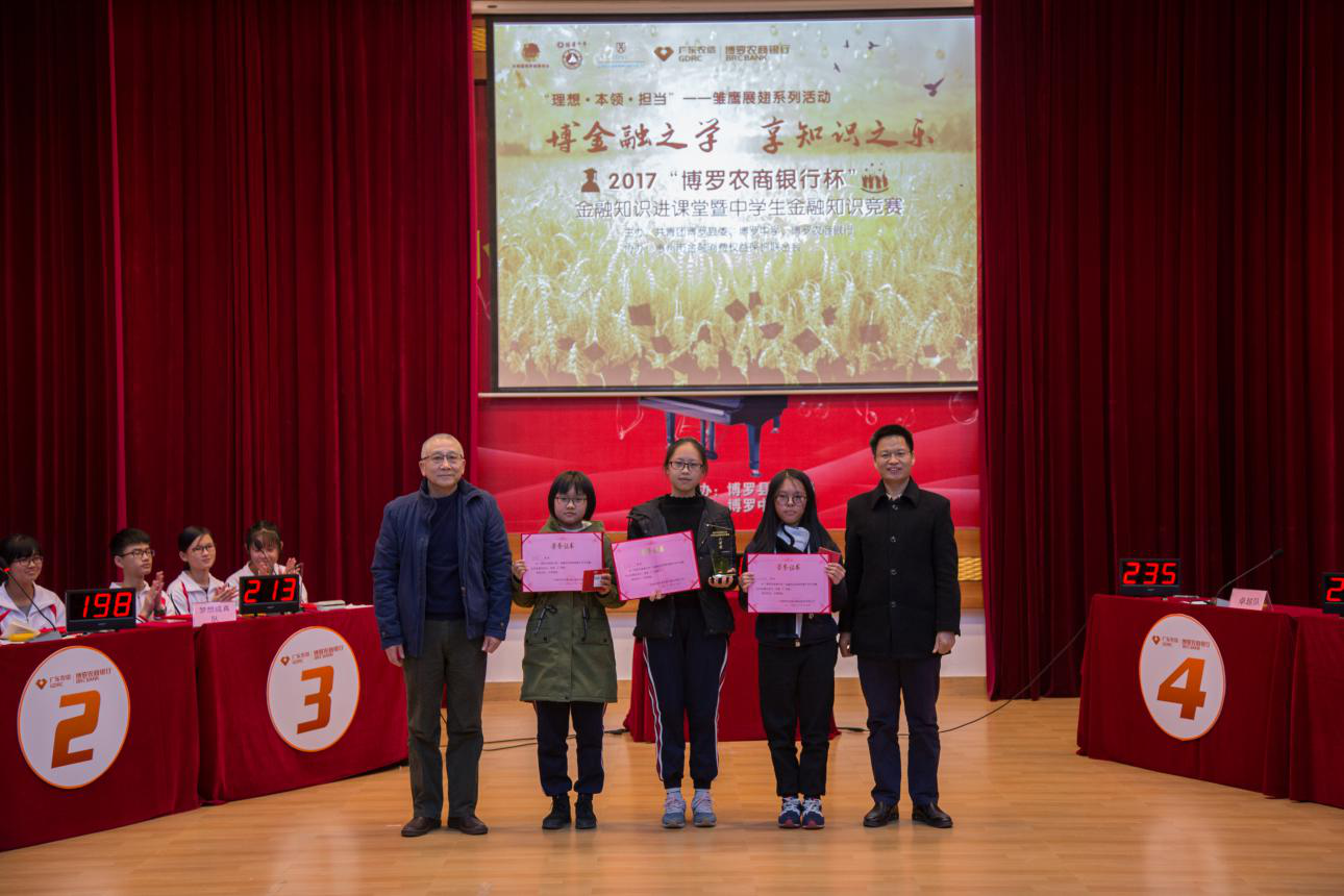 近几年来,联合会与辖区金融机构积极履行社会责任,探索各种各样的方式共同致力于推进金融知识普及工作,颇有成效。2017年12月17日,联合会与博罗农商行联合举办的“理想.本领.担当”—雏鹰展翅系列活动之“博罗农商银行杯”金融知识进课堂暨中学生金融知识决赛在博罗中学圆满举行。共青团博罗县委书记李慧敏、联合会副秘书长黄新铭、博罗农商行纪委书记、副行长付元军、博罗中学副校长卢昆明等嘉宾及师生代表共500人观赛。