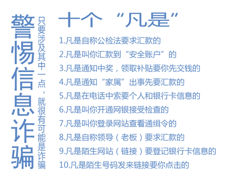 为进一步协助金融机构做好电信诈骗风险管理工作,提高广大市民群众的防范意识,联合会在《防范打击电信网络金融诈骗专题一》的基础上,综合惠州市公安局、惠州市银行业协会《诈骗手法大汇总》宣传手册上典型案例共十类,形成专题二、专题三向各会员单位及广大市民作出风险提示。